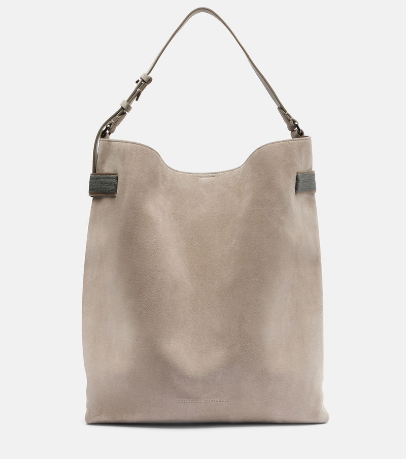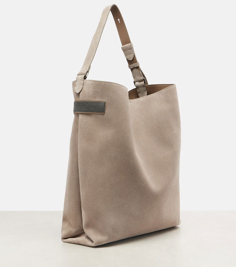 Brunello Cucinelli's designs are created in Solomeo, a medieval hamlet whose art and traditions are woven into the house's every fiber. Expertly crafted from suede, the Essence Large tote bag features an adjustable shoulder strap and signature Monili embellishments.