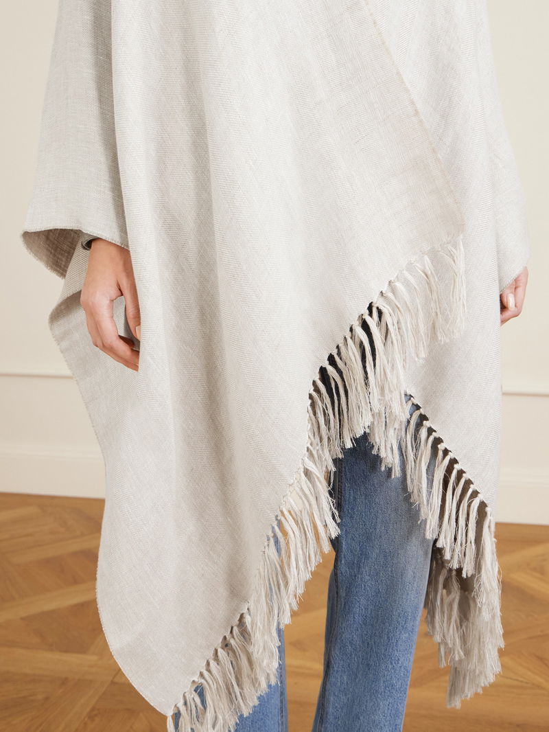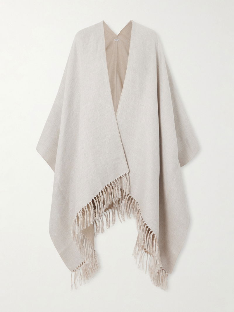 Brunello Cucinelli's scarf has been made in Italy from soft and breathable linen-blend and finished with knotted fringing. We love it for traveling or for evenings when you need an extra layer.