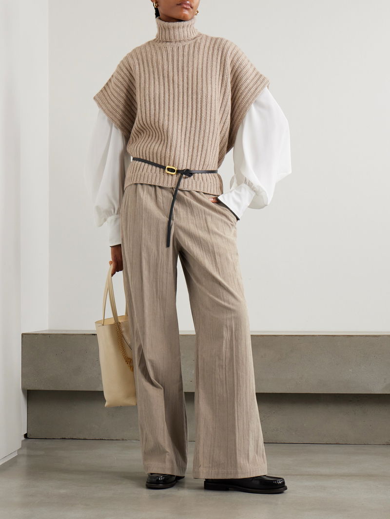 Brunello Cucinelli’s minimal basics and casual wear are elevated by luxury materials in sophisticated neutral tones and elegant details. From crisp cotton shirts, cashmere sweater dresses and leather blazers to puffer coats and suede and shearling bags, shoes and boots, pieces balance a relaxed aesthetic with a timeless quality.