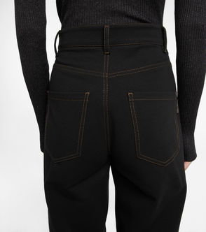 These calfskin leather pants from Brunello Cucinelli are sure to go on heavy repeat in your wardrobe. They have a high-rise waist and flattering bootcut legs that flare gently outwards along the calves. Note the exceptionally subtle logo-embossed fastening.