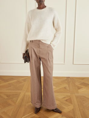 Brunello Cucinelli's jeans are made from denim that's garment-dyed a versatile beige - it'll fade into a subtle patina over time. Designed with a high-rise, they have straight legs and fasten with a gold-tone button. The rolled cuffs will highlight a great pair of sneakers.