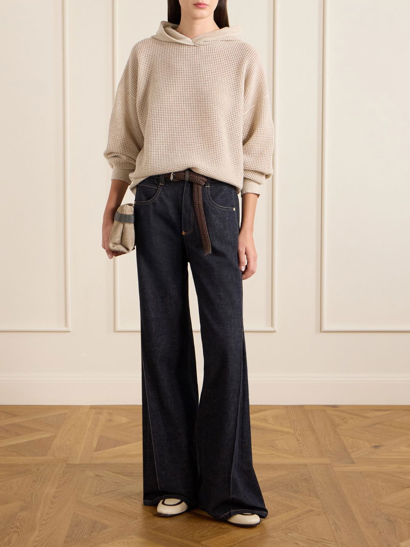 Brunello Cucinelli’s minimal basics and casual wear are elevated by luxury materials in sophisticated neutral tones and elegant details. From crisp cotton shirts, cashmere sweater dresses and leather blazers to puffer coats and suede and shearling bags, shoes and boots, pieces balance a relaxed aesthetic with a timeless quality.