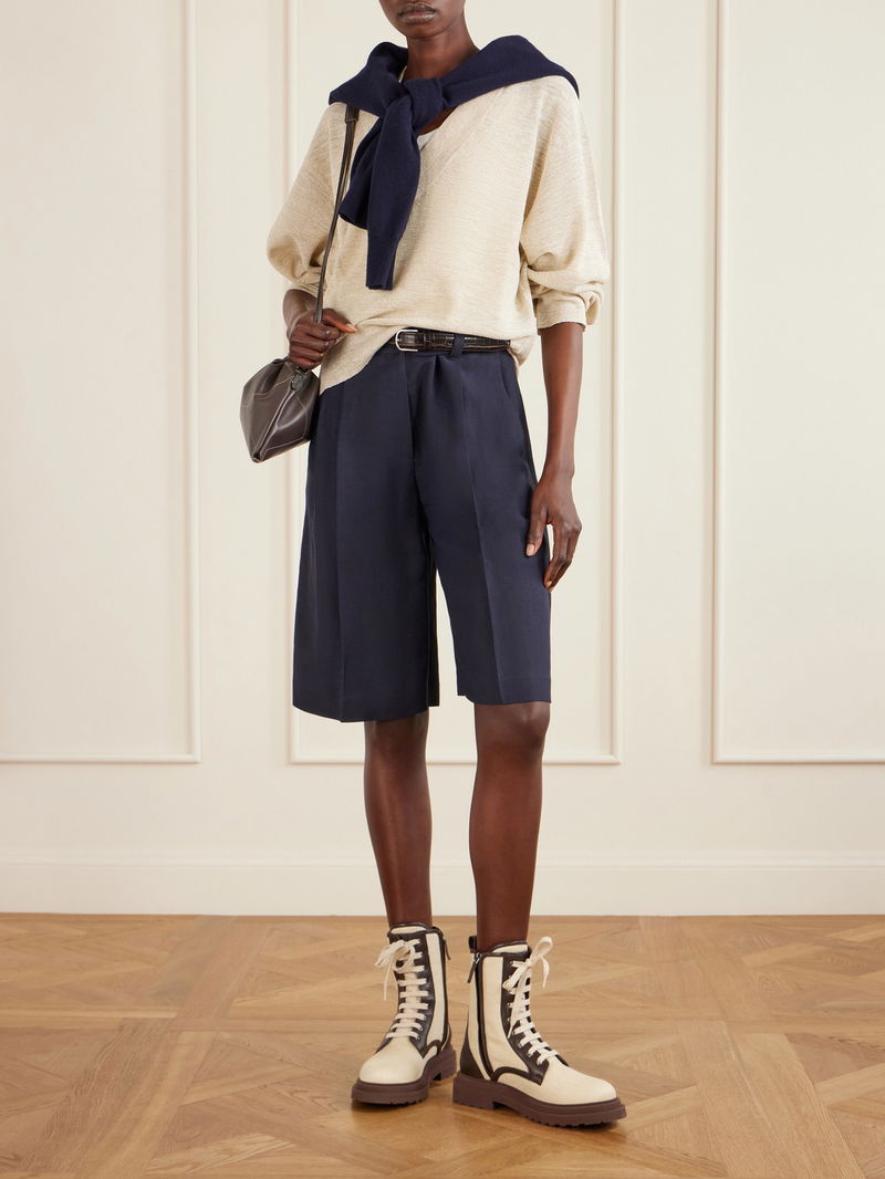 Brunello Cucinelli’s minimal basics and casual wear are elevated by luxury materials in sophisticated neutral tones and elegant details. From crisp cotton shirts, cashmere sweater dresses and leather blazers to puffer coats and suede and shearling bags, shoes and boots, pieces balance a relaxed aesthetic with a timeless quality.