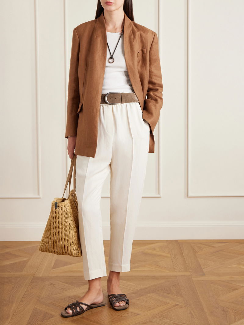 Brunello Cucinelli’s minimal basics and casual wear are elevated by luxury materials in sophisticated neutral tones and elegant details. From crisp cotton shirts, cashmere sweater dresses and leather blazers to puffer coats and suede and shearling bags, shoes and boots, pieces balance a relaxed aesthetic with a timeless quality.