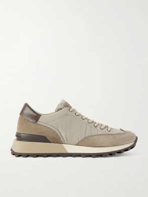 Showcasing casual refinement with a sporty touch, these sneakers from Brunello Cucinelli are crafted from leather and presented in a streamlined silhouette. The lace-up pair is finished with tonal logo tabs at the back.