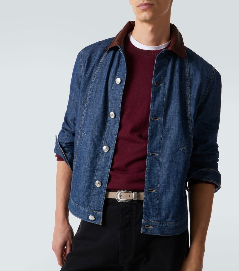 Brunello Cucinelli's designs are created in Solomeo, a medieval hamlet whose art and traditions are woven into the house's every fiber. This jacket is crafted from cotton denim and showcases a leather collar.