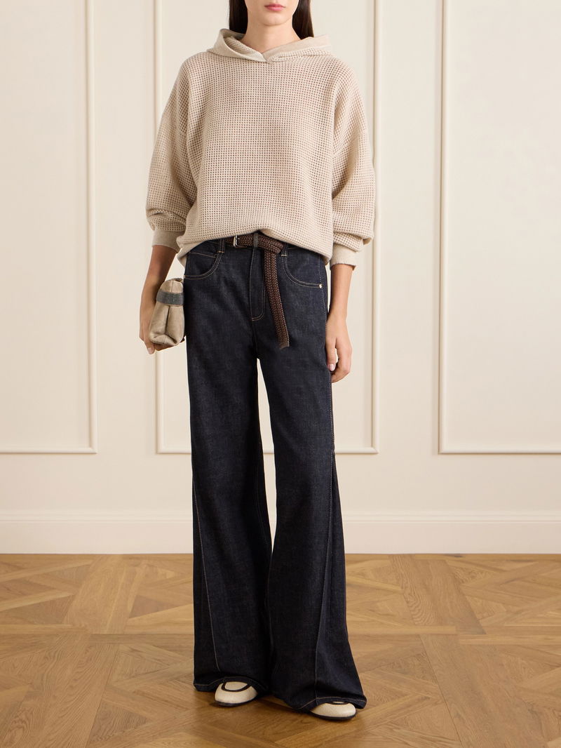 Brunello Cucinelli’s minimal basics and casual wear are elevated by luxury materials in sophisticated neutral tones and elegant details. From crisp cotton shirts, cashmere sweater dresses and leather blazers to puffer coats and suede and shearling bags, shoes and boots, pieces balance a relaxed aesthetic with a timeless quality.