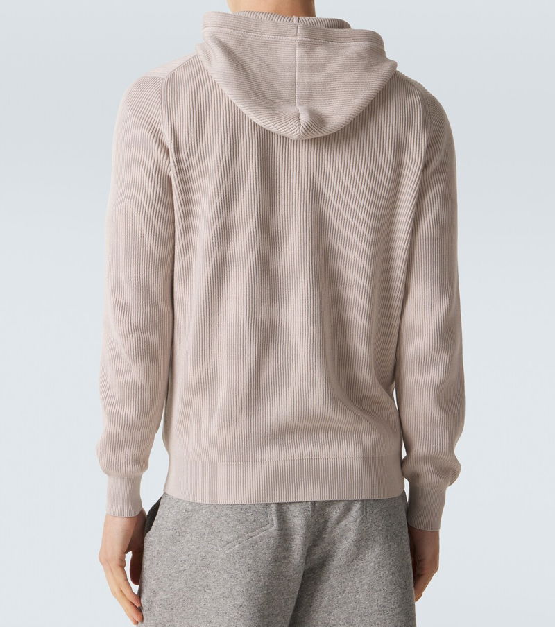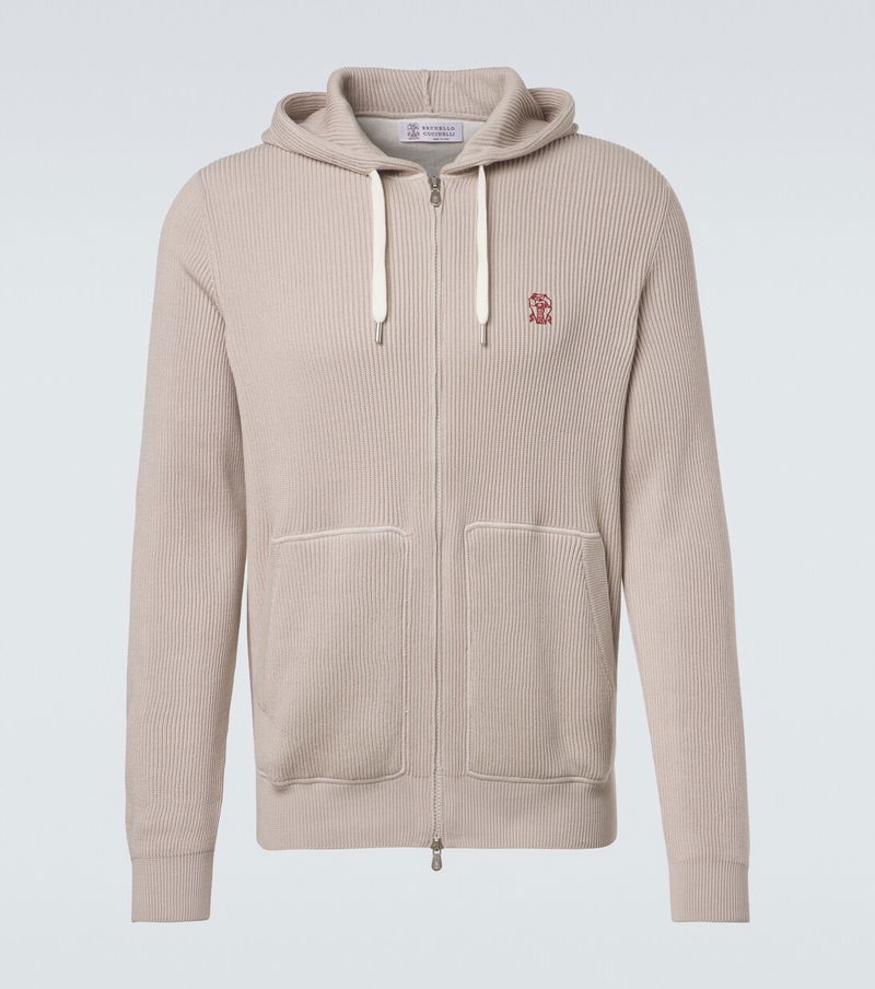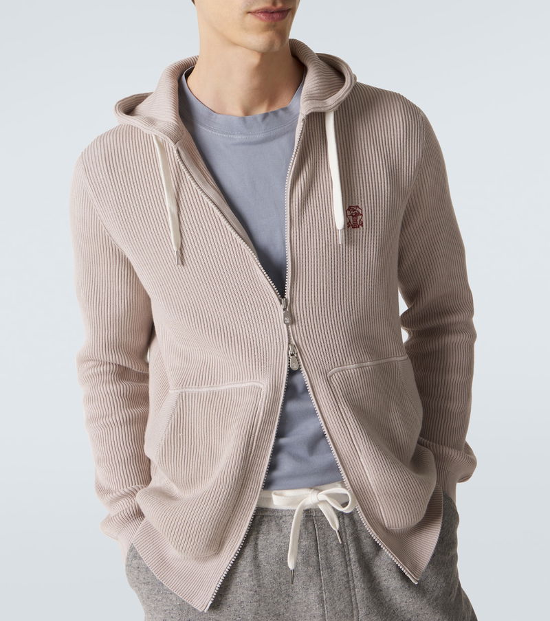 Logo Ribbed-knit Cotton Zip-up Hoodie