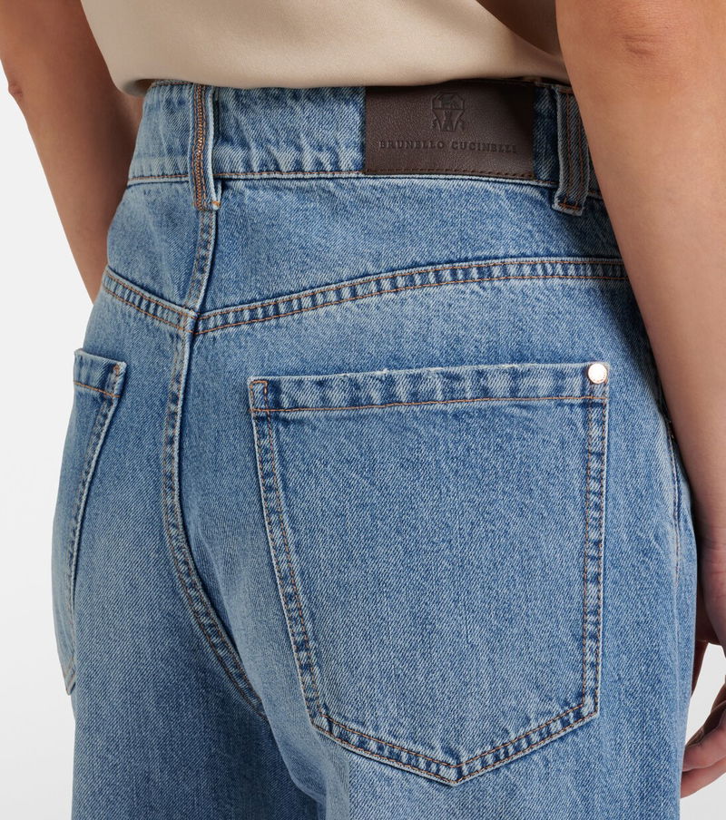These jeans from Brunello Cucinelli are cut to a classic wide-leg silhouette, complemented by cuffed hems that create a slightly cropped effect. The design is fitted with a leather logo patch at the back.