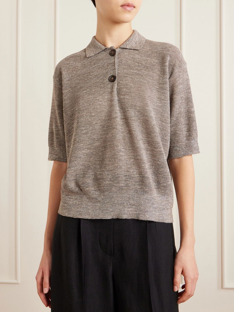 Metallic-knit Polo Shirt