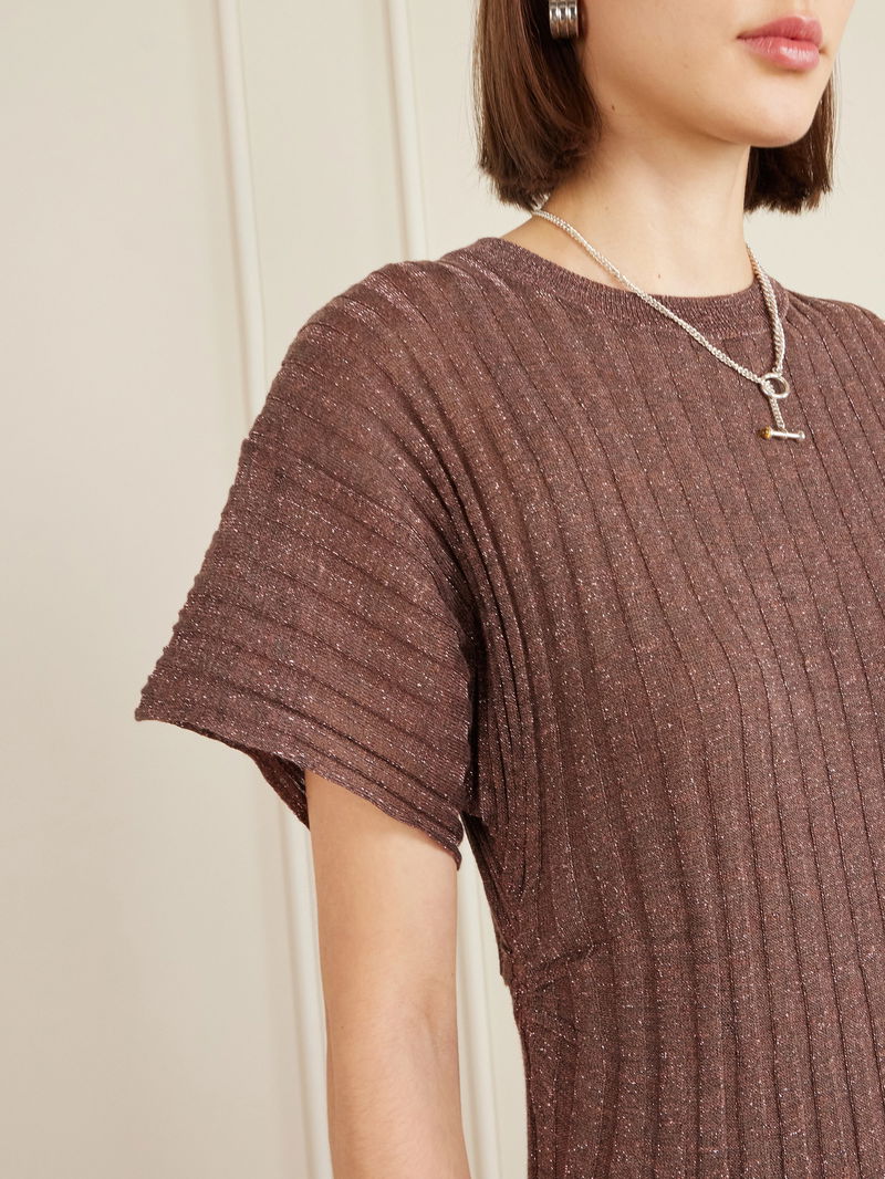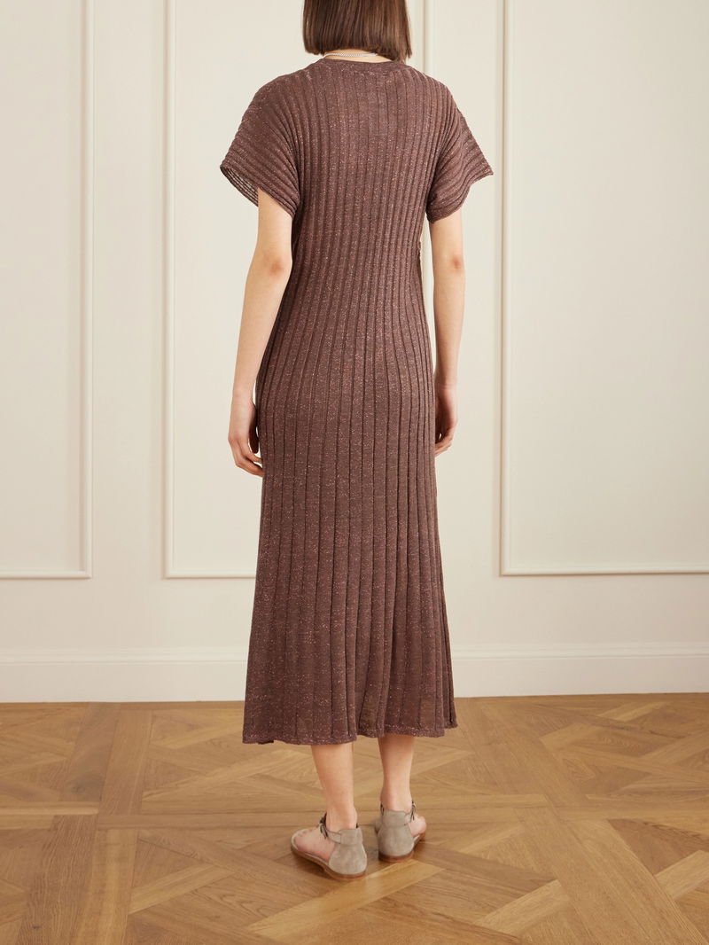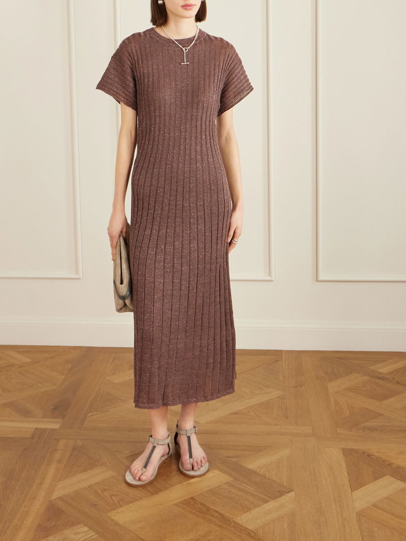 The delicate shine of this Brunello Cucinelli dress makes it suitable for so many different occasions. Made in Italy, it's knitted with thick ribbing and has a slightly sheer finish. Team it with elegant sandals and understated jewelry.