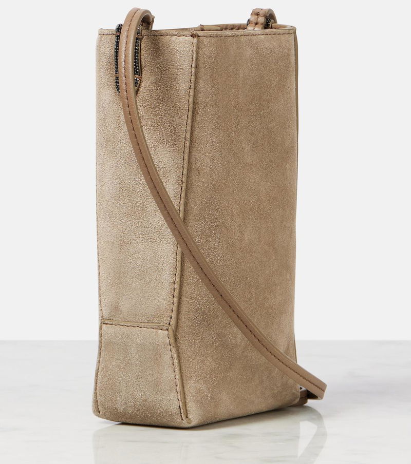 Enjoy the sophisticated practicality of the Mini crossbody bag from Brunello Cucinelli. The compact piece is constructed from soft suede and has Monili detailing and a leather shoulder strap.