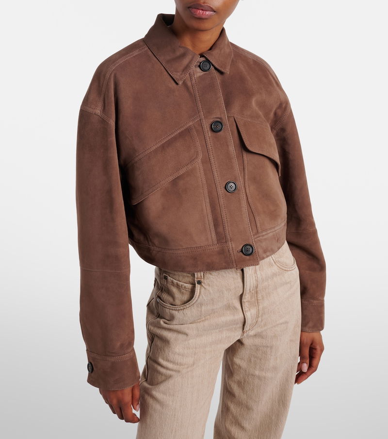 This jacket showcases Brunello Cucinelli's signature flair for fine craftsmanship with a cropped suede construction. The design is fitted with slanted flap pockets on the front and Monili beading below the collar.