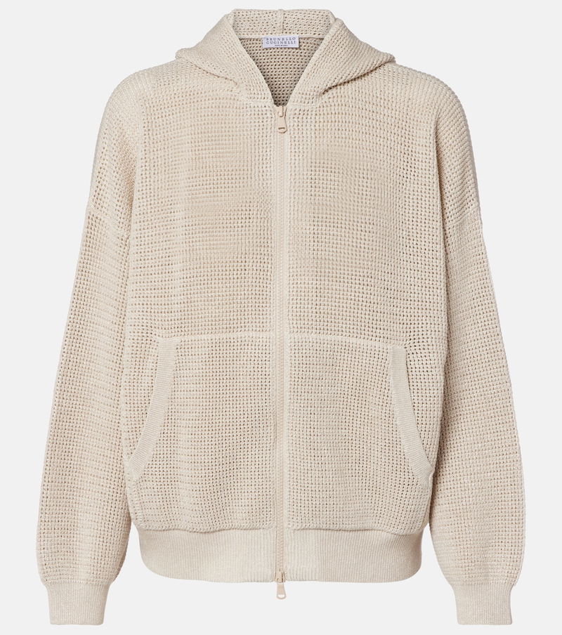 Brunello Cucinelli: where fine Italian craftsmanship, luxurious fabrics and timeless elegance meet. Made from cotton-blend lamé, this hoodie is a zip-up style with an open-knit construction and a cozy, oversized silhouette.