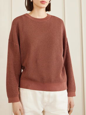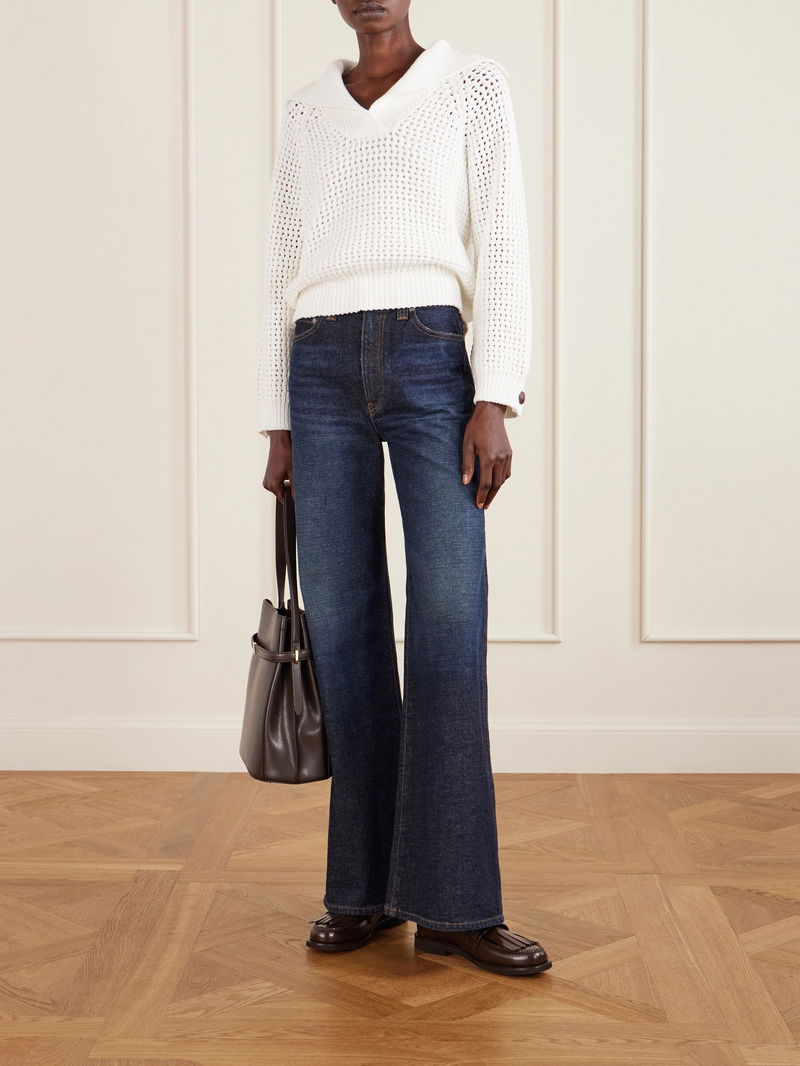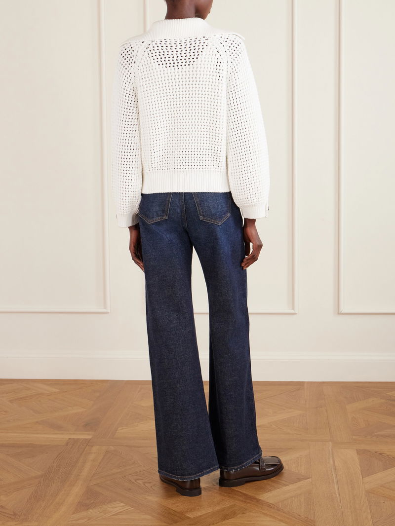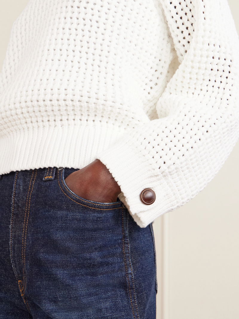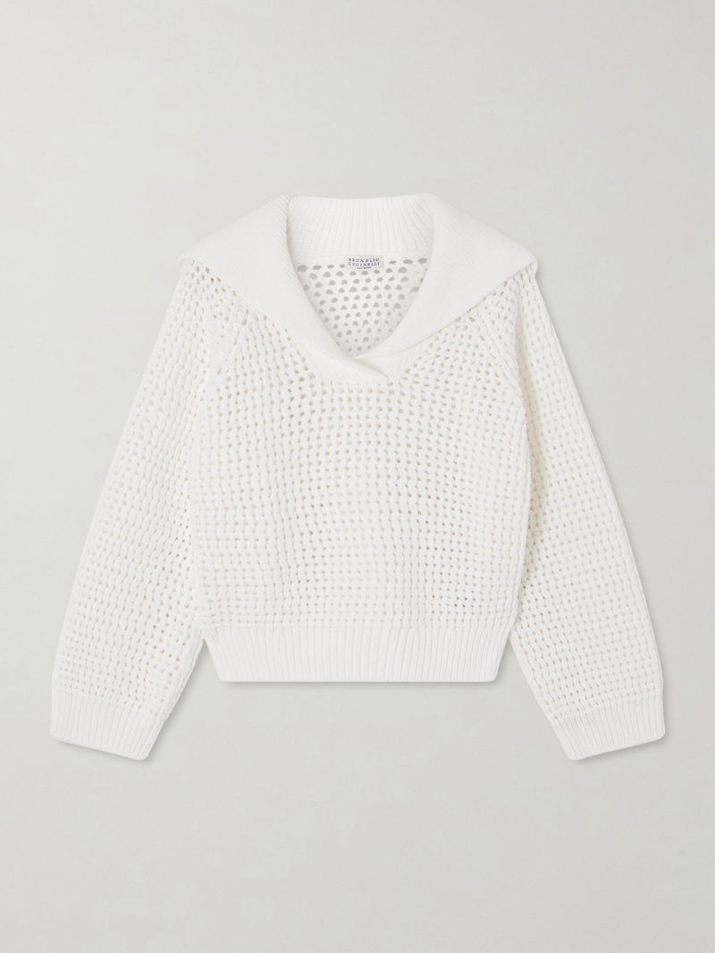There's a refined ease to Brunello Cucinelli's sweater. Made in Italy, it's knitted in an open stitch from cotton-blend, so it's airy and breathable. The wide collar looks so sophisticated.