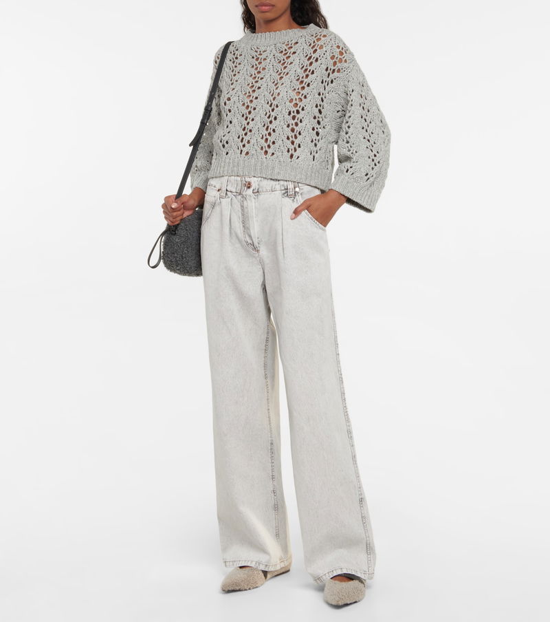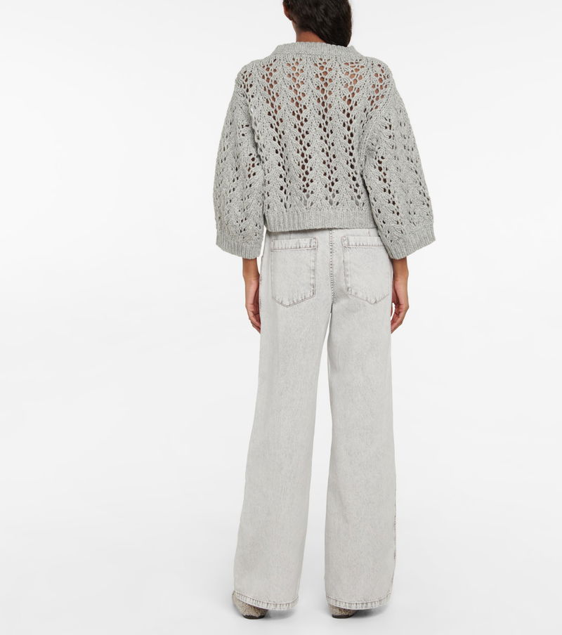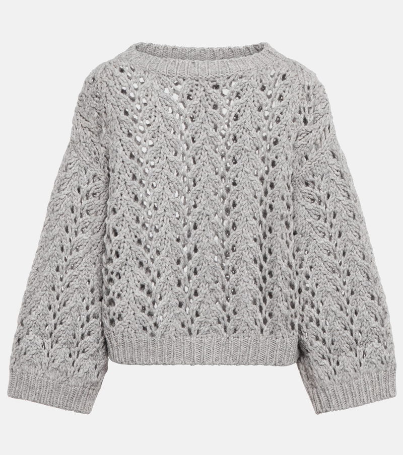 Made from a wool-blend in an openwork knit, this sweater from Brunello Cucinelli has ribbed-knit edges and wide sleeves.