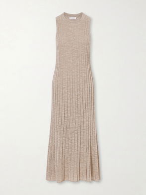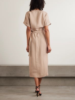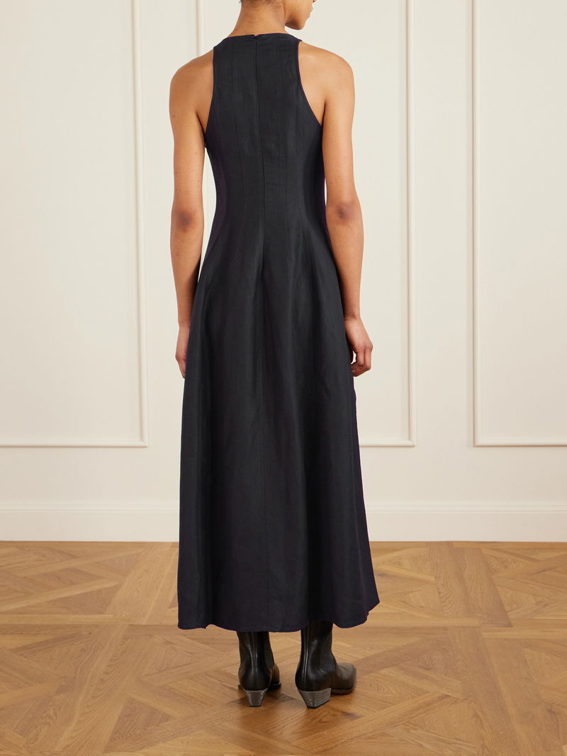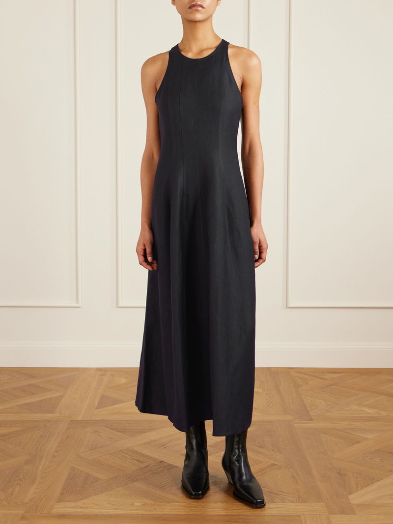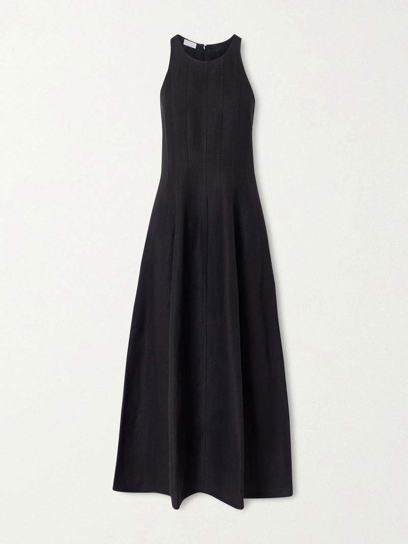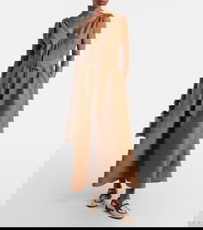 Brunello Cucinelli's dress is cut from panels of twill that meet at subtle seams along the fitted bodice. It's designed to nip in at the waist before gently flaring out to a floaty, softly pleated skirt and has a high neckline. Wear yours with flats or heels.