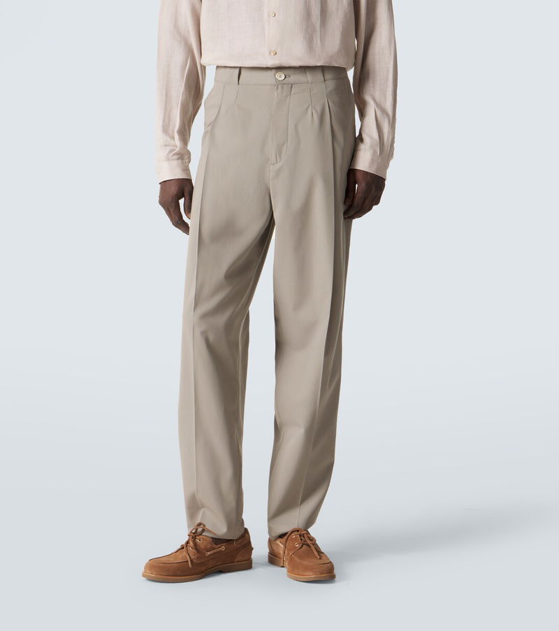 Pleated Cotton Tapered Pants