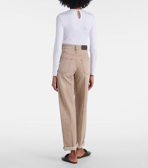Brunello Cucinelli's commitment to excellence elevates its wardrobe staples beyond the everyday. These high-rise jeans have been made in Italy from linen-rich denim and have wide legs enhanced by front pleats. The crisp white wash works well year-round.