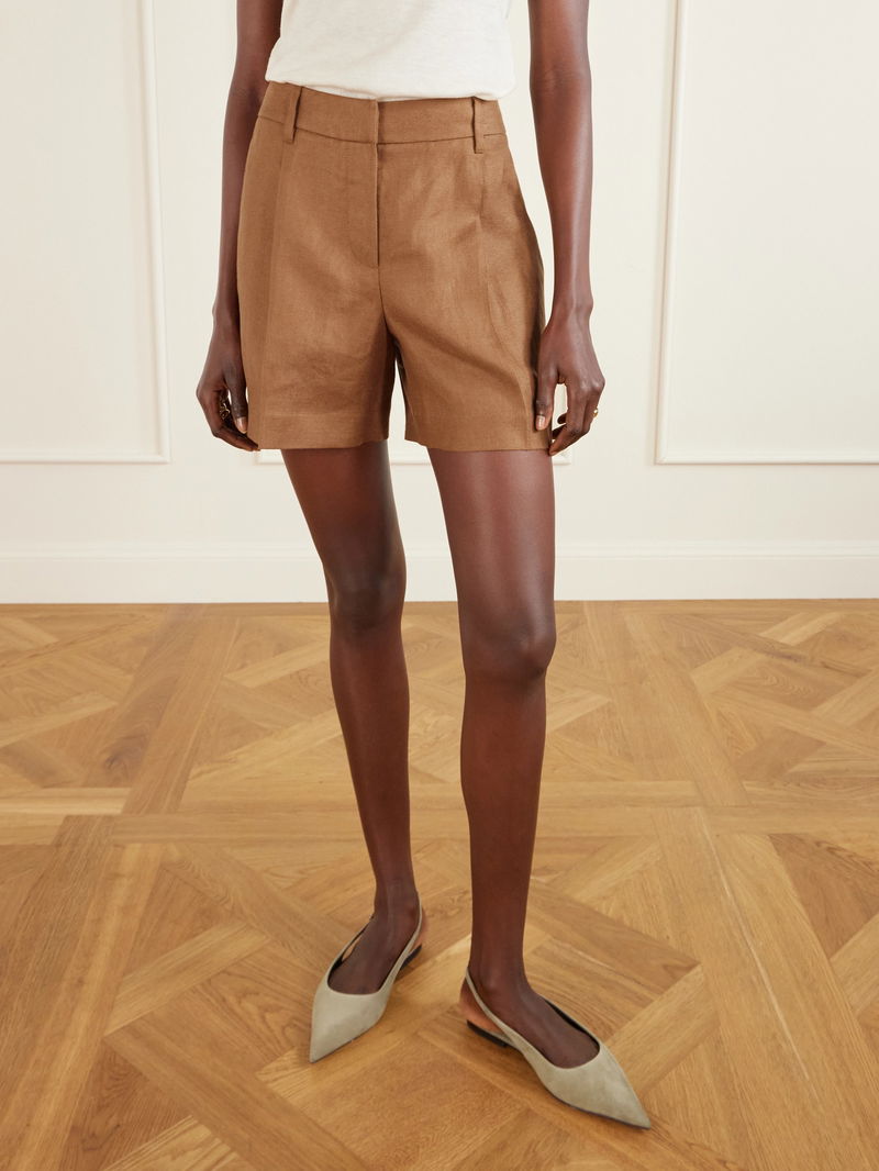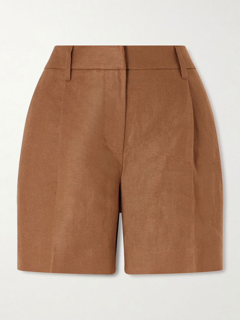 Brunello Cucinelli's shorts combine clean lines and classic style. They've been tailored in Italy from linen-twill with pleated straight legs and Monili beads embellishing the back belt loop. Wear yours with the matching blazer from our edit.