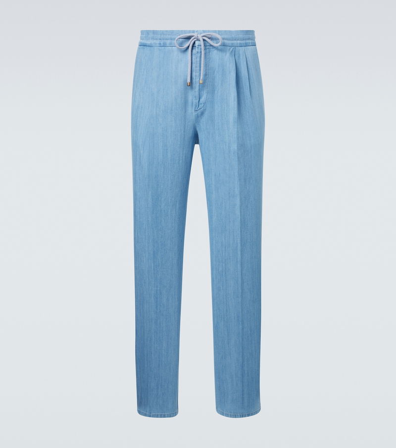 Add casual refinement to your daily-wear edit with these Brunello Cucinelli jeans. The pair is cut to a straight-leg silhouette with a pleated finish and a drawstring waistband.