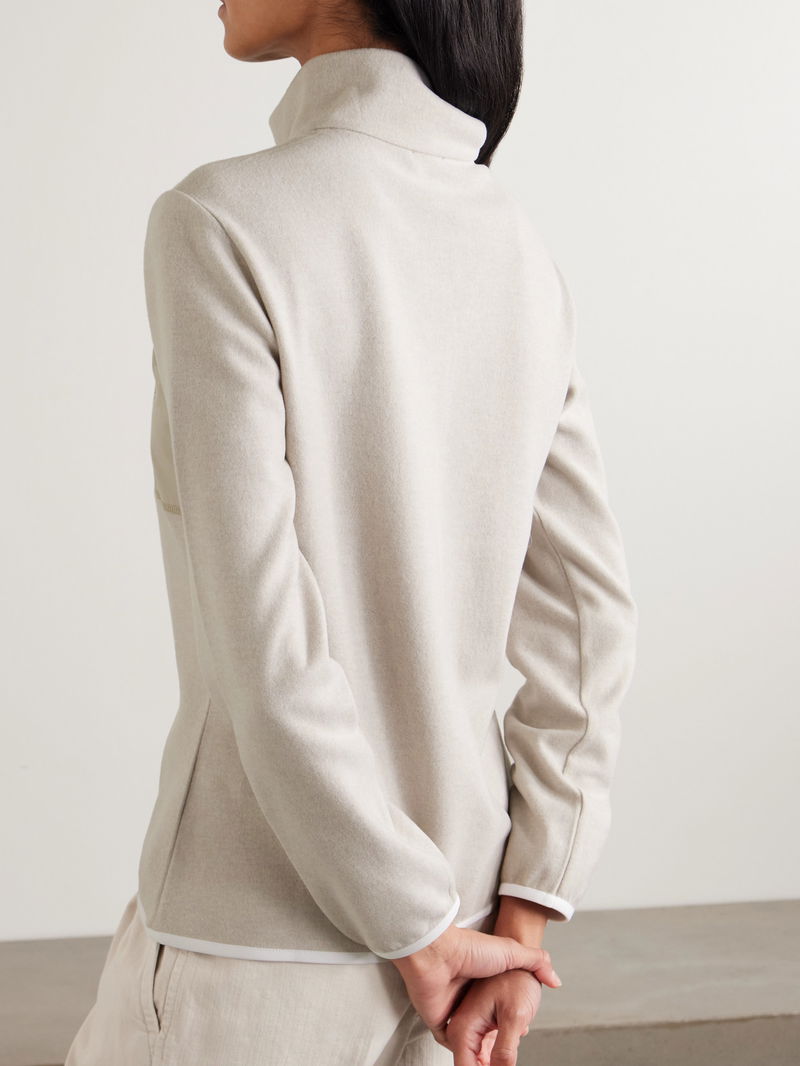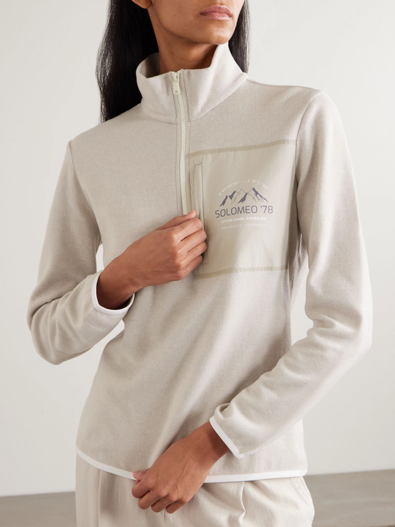 Brunello Cucinelli's sweatshirt is made from cashmere-blend, which feels wonderfully soft and warm. It has a shell chest pocket that's printed with an Alpine logo, ideal for aprés-ski events.