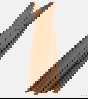 Brunello Cucinelli's dress has been rib-knitted in Solomeo, Italy from a soft blend of alpaca and cotton. Chic and timeless, it has a fitted mock neck and cuffs that define the relaxed shape. Style the midi hem with leather boots.