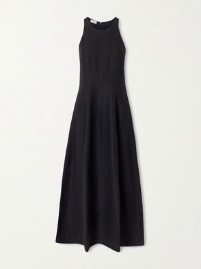 Brunello Cucinelli prioritizes natural fibers sourced from suppliers known for their quality and innovation. This midi dress is finely knitted from soft wool and has a classic V-neckline and nipped-in waist.