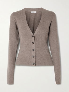 Illuminated with shimmering sequins, Brunello Cucinelli's cardigan is an easy way to elevate the simplest of outfits. It's knitted with plenty of soft cashmere and wool and has a ribbed finish and boxy shape.