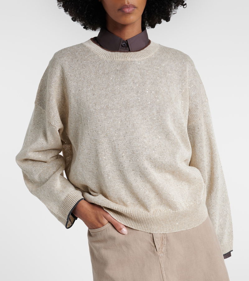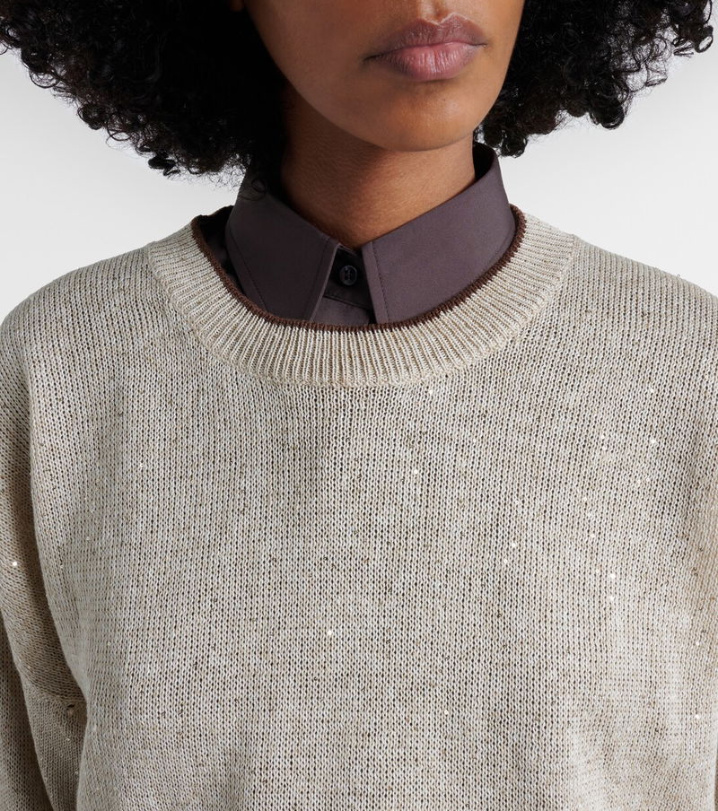 Sequined Linen-blend Sweater