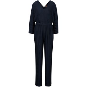 Navy silk stretchy sleeveless jumpsuit in excellent, pre-loved condition with minor wear as shown. With embellished shoulder straps, square neck, straight leg, 2x side pockets and side zip fastening.