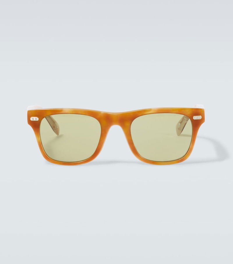These sunglasses from Brunello Cucinelli are shaped with bold, thick arms and green lenses. The pair is made from yellow acetate in a square silhouette.