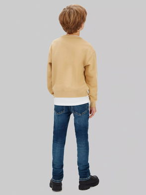 Straight jeans. Pockets: five pockets. Elasticated waistband. Belt loops.
