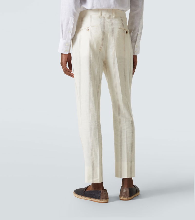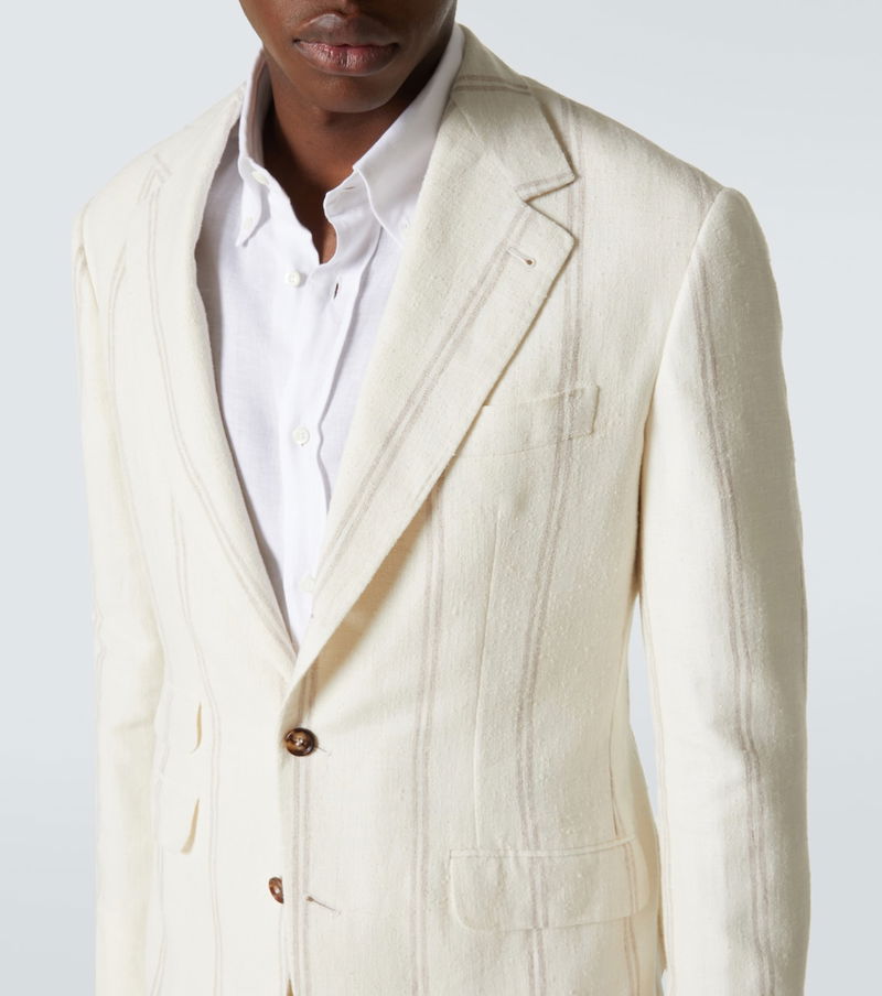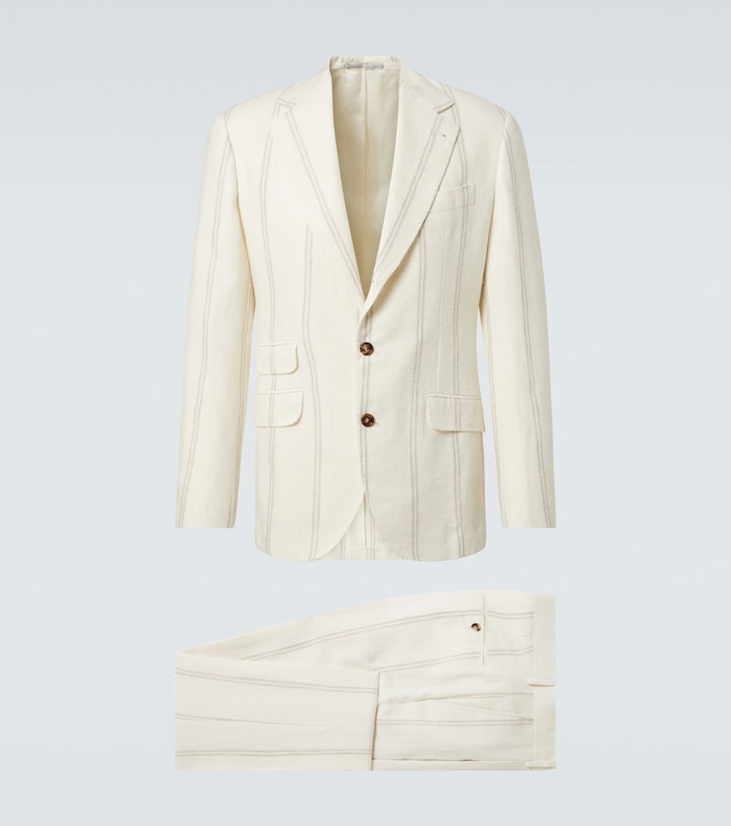 Brunello Cucinelli's designs are created in Solomeo, where art and traditions are woven into the house's every fiber. Crafted from a premium linen and wool blend, this suit is finished with a striped motif.