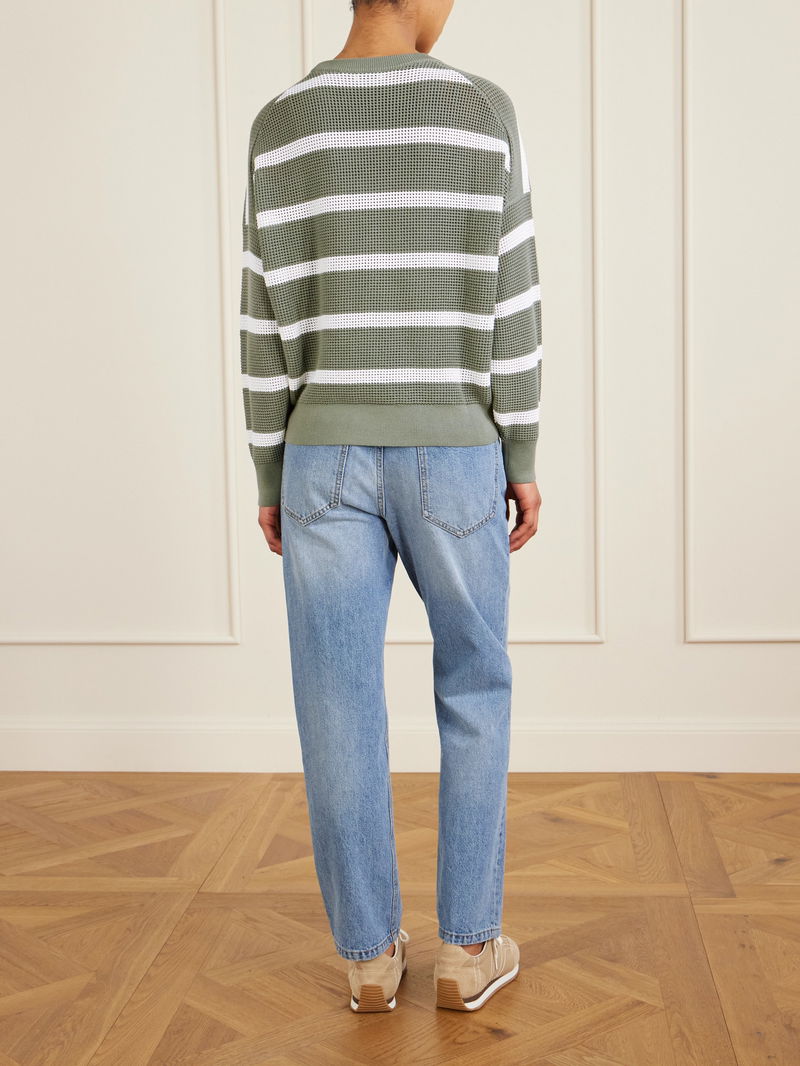 Brunello Cucinelli’s minimal basics and casual wear are elevated by luxury materials in sophisticated neutral tones and elegant details. From crisp cotton shirts, cashmere sweater dresses and leather blazers to puffer coats and suede and shearling bags, shoes and boots, pieces balance a relaxed aesthetic with a timeless quality.