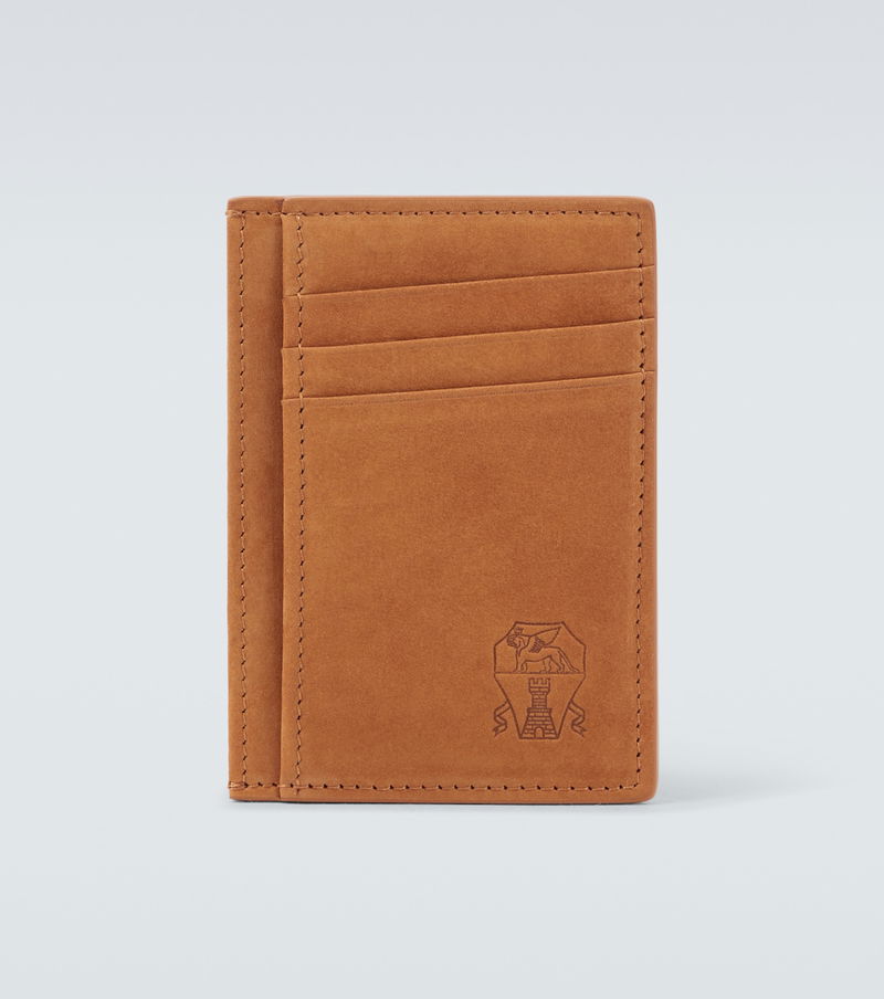 Brunello Cucinelli's designs are created in Solomeo, a medieval hamlet whose art and traditions are woven into the house's every fiber. This card holder is crafted from suede and features several compartments and the signature logo.