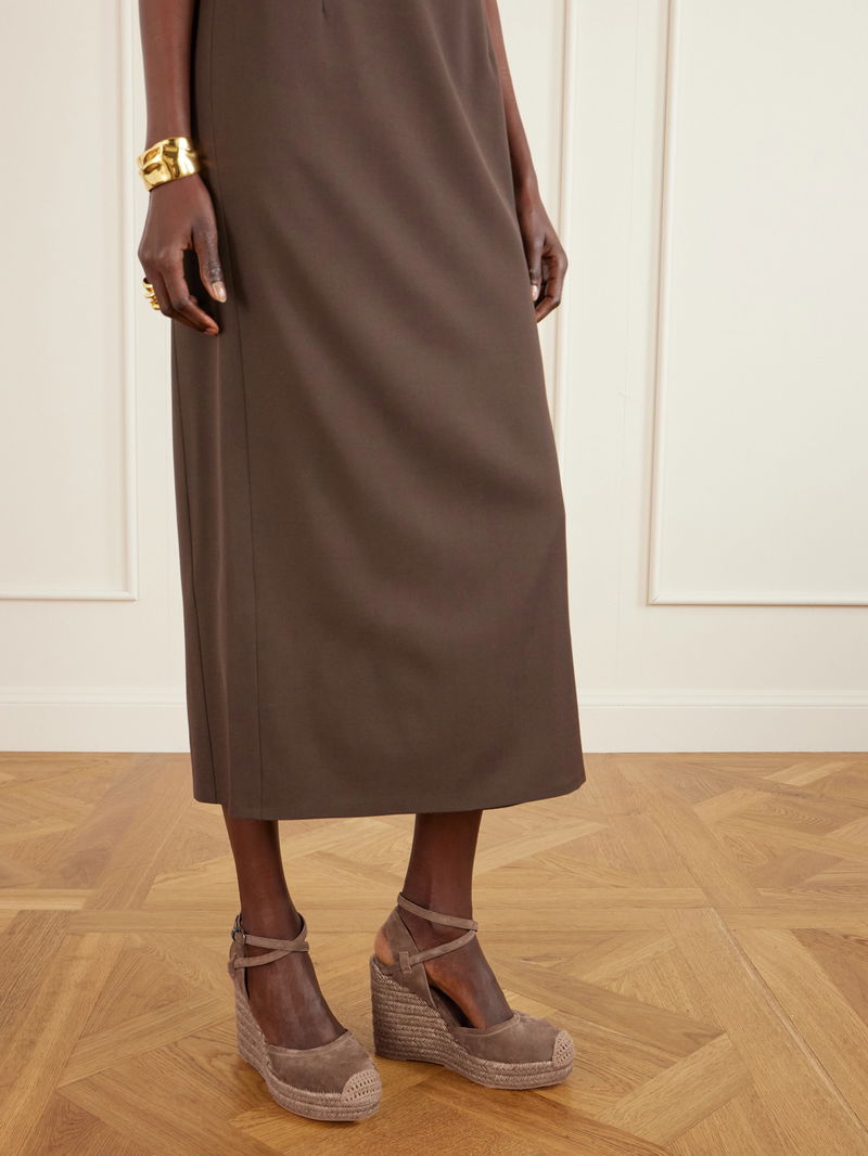 Brunello Cucinelli's espadrilles are detailed with the label's signature Monili beads on the ankle strap. They’re made from soft suede and rest on comfortable wedge heels. Style yours with a maxi dress.
