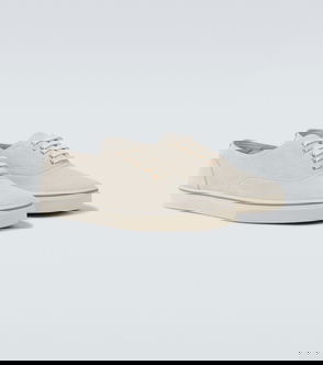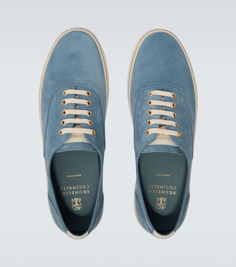 These sneakers from Brunello Cucinelli showcase a smooth suede construction and a sporty silhouette. The versatile pair is complemented by soft leather linings, contrast heel tabs, and sturdy soles.
