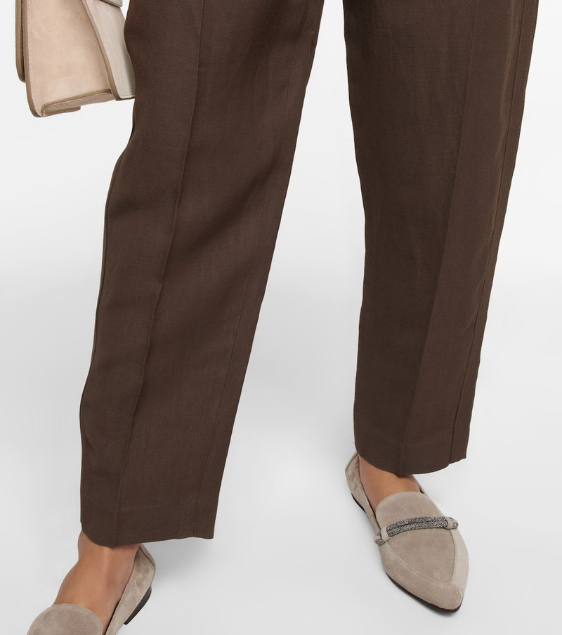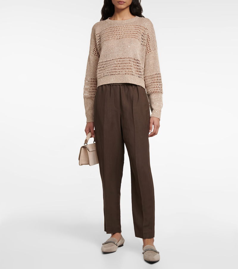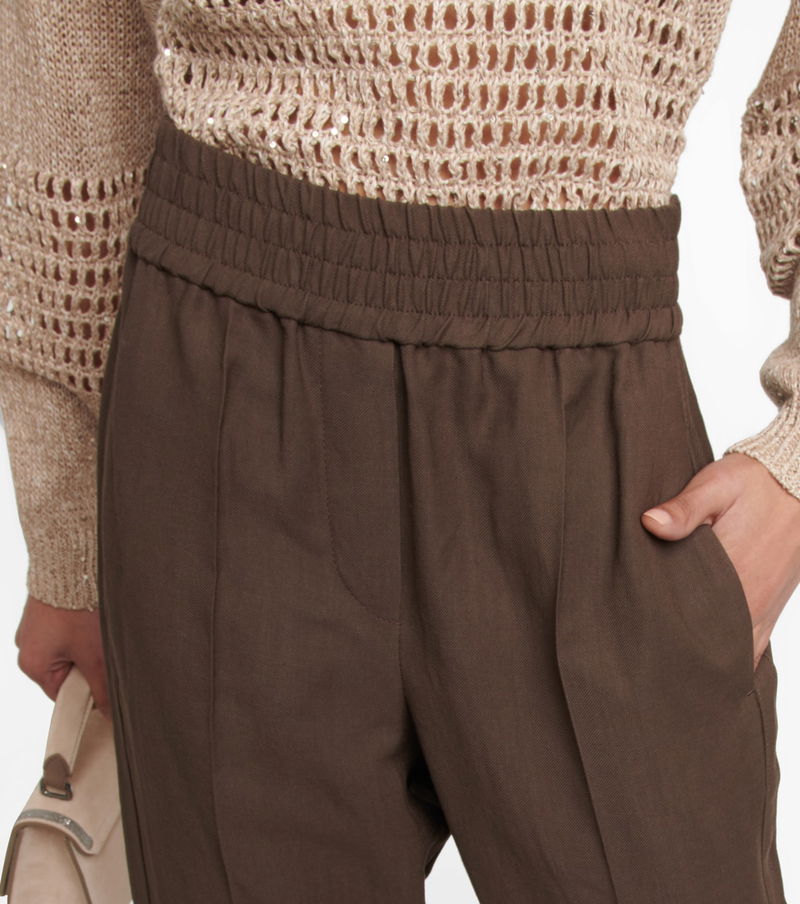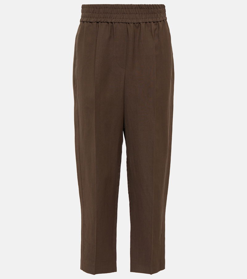 The partial linen composition of these Brunello Cucinelli pants contributes to their lightweight feel and relaxed silhouette. The Italian-made design has a tapered finish and an elasticated waistband.