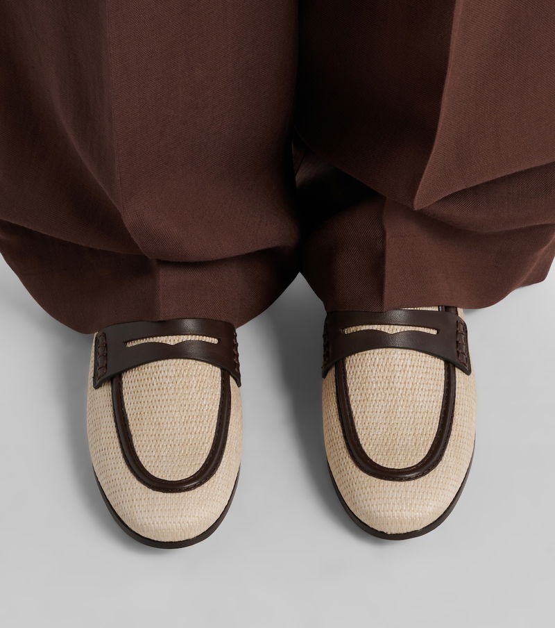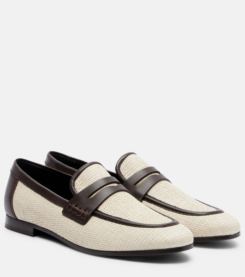 Woven Leather-trimmed Penny Loafers