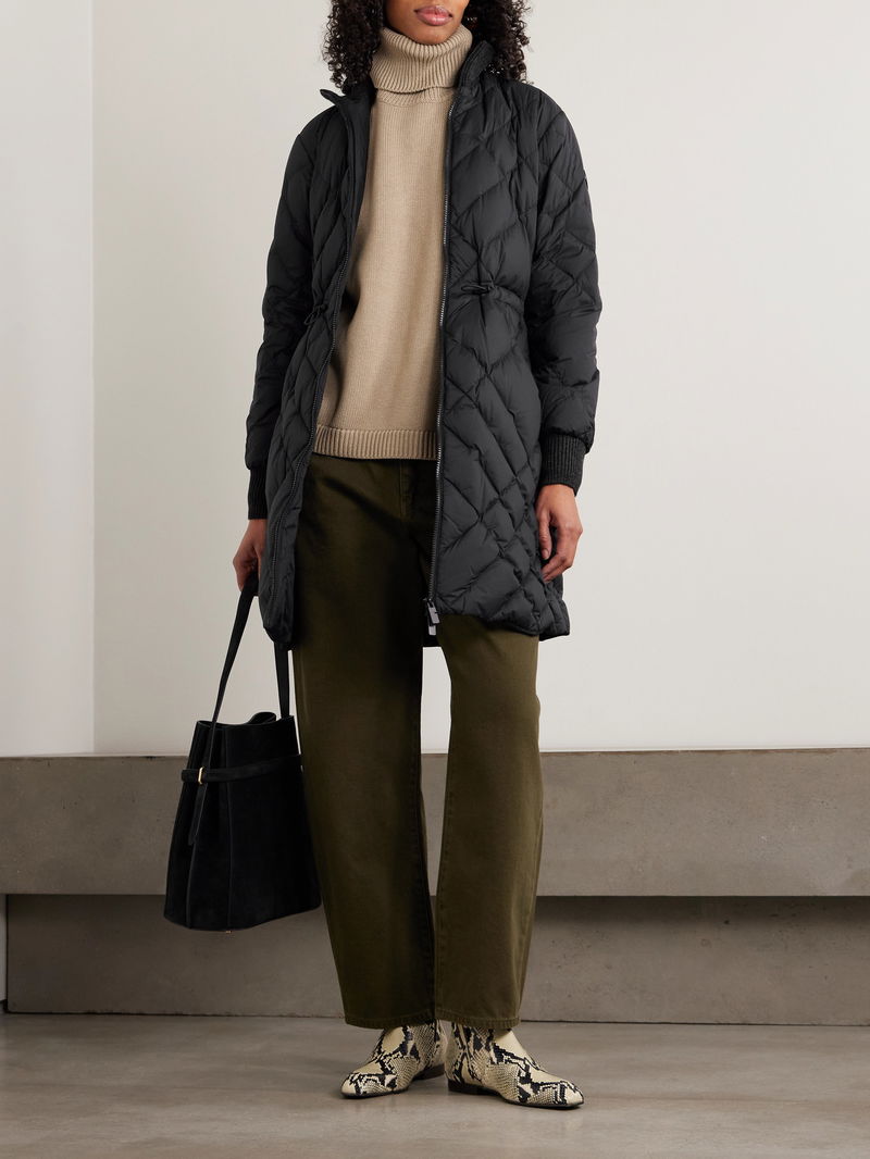 Appliquéd Leather-trimmed Padded Quilted Shell Down Jacket