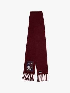 Size & Fit Brand Bio A cashmere scarf woven with a B charm pattern. Made in Scotland at a mill founded in 1797 the fabric is washed in local spring water and brushed with teasels - dried flowers that are drawn along the surface of the cashmere to 'raise' the cloth creating a natural lustre and ultra-soft finish. Rectangular Fringing at both ends Leather tag with embossed Burberry lettering 168 x 30cm/66.1 x 11.8in 100% cashmere Trim: 100% calf leather Specialist dry clean Made in Scotland