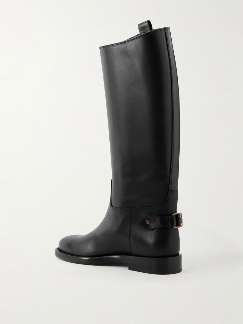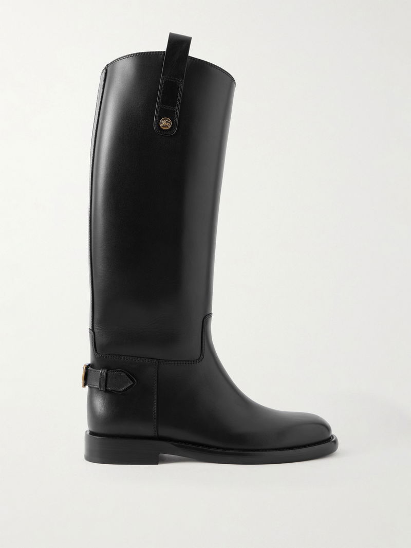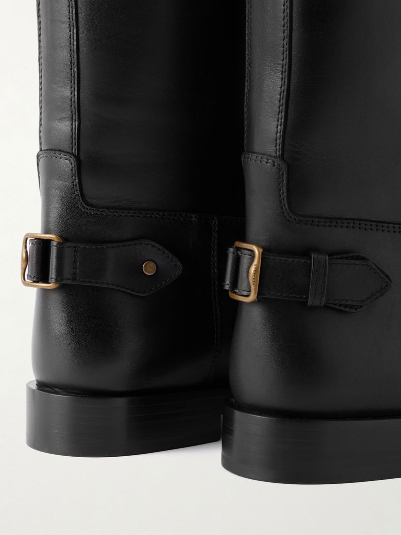 Nodding to equestrian styles, Burberry's knee boots have been expertly crafted in Italy from supple leather. They have classic rounded toes, buckled ankle straps and handy pull tabs. Style yours with pants tucked in or with mini skirts.