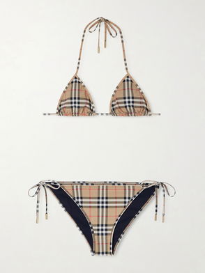 A halterneck bikini top in stretch nylon printed with the Burberry Check. Comes with a matching drawstring bag. Part of Burberry Classics wardrobe foundations with a unique Burberry slant.