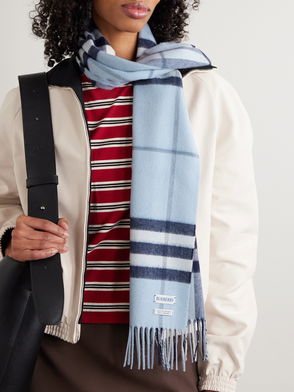 Size & Fit Brand Bio The iconic Burberry Check cashmere scarf made in Scotland at a mill founded in 1797. Woven on traditional looms the scarf takes more than 30 steps to complete. The fabric is washed in local spring water and brushed with teasels - dried flowers that are drawn along the surface of the cashmere to 'raise' the cloth creating a natural lustre and ultra-soft finish. Part of Burberry Classics wardrobe foundations with a unique Burberry slant. Rectangular Fringing at both ends 168 x 30cm/66.1 x 11.8in 100% cashmere Specialist dry clean Made in Scotland