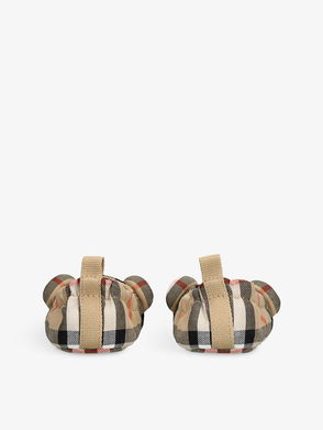 Size & Fit Brand Bio A pair of sneakers in calf leather with wide laces and a perforated check pattern at the sides and tongue. Lace-up closure Raised Burberry lettering at heel Upper: 100% calf leather Lining: 70% cotton 30% sheep leather Sole: 100% rubber Imported