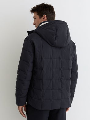 A hooded puffer jacket in Italian-woven Burberry Check nylon reversing to a solid colour tagged with Burberry's logo appliqué. The design is filled with duck down and feathers.