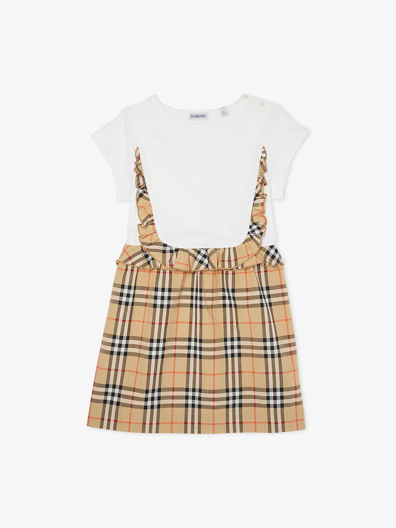 Check-Pattern Frill-Trim Stretch-Cotton Dress 4-14 Years