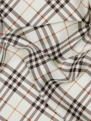 A scarf made in Italy from silk twill. The design is printed with the Burberry Check and framed with a solid colour border.