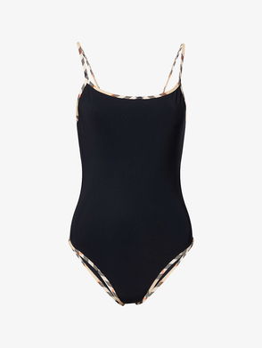 A scoop-back swimsuit in stretch nylon printed with the Burberry Check. Comes with a matching drawstring bag. Part of Burberry Classics wardrobe foundations with a unique Burberry slant. Burberry Classics falls under the latest phase of the ReBurberry programme featuring clothing designed with a focus on using certified and responsibly sourced materials and reducing our environmental impact.